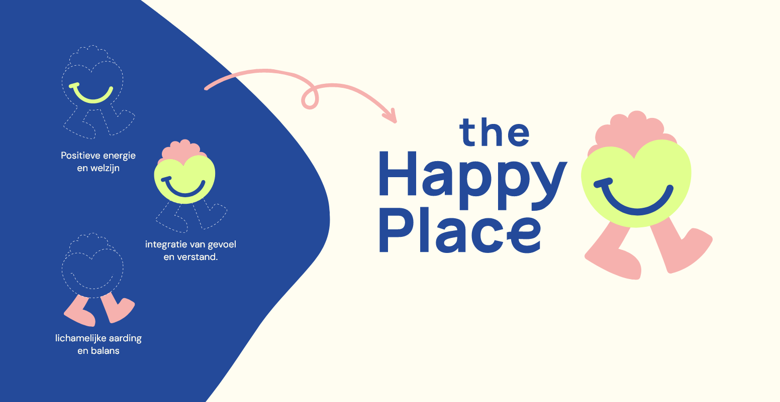 Voor The Happy Place ontwikkelden we een logo en huisstijl die warmte, balans en vertrouwen uitstralen. Zachte kleuren, een rustige typografie en een heldere vormtaal vormen samen een herkenbare visuele identiteit die past bij de praktijk en haar doelgroep.